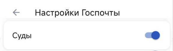 Для получения электронных судебных извещений необходимо в личном кабинете в своем профиле во вкладке «Настройки госпочты» активировать пункт «Суды» (бегунок должен быть синего цвета).